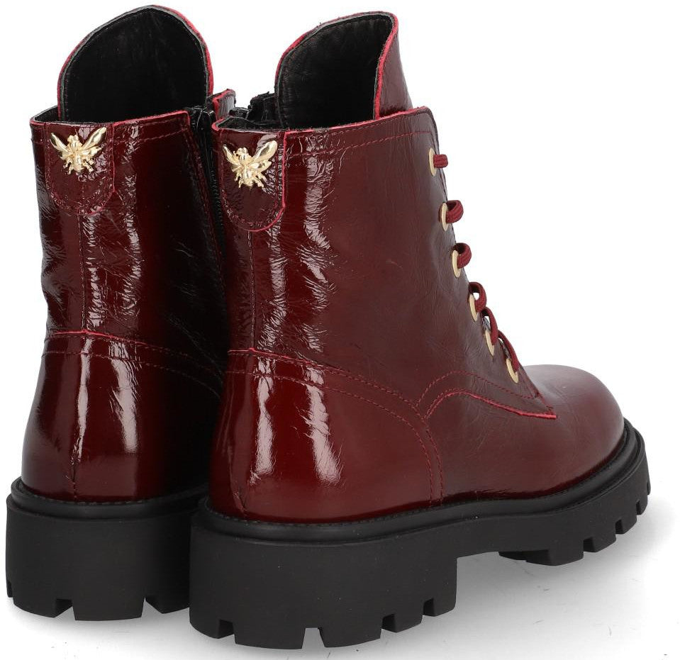 Botas para mujer ALPE AGNES fabricado en piel ( vernice) de color rojo con tacón de 3, 5 cm, suela antideslizante y puntera redonda, con cierre mediante cremallera y caña baja.