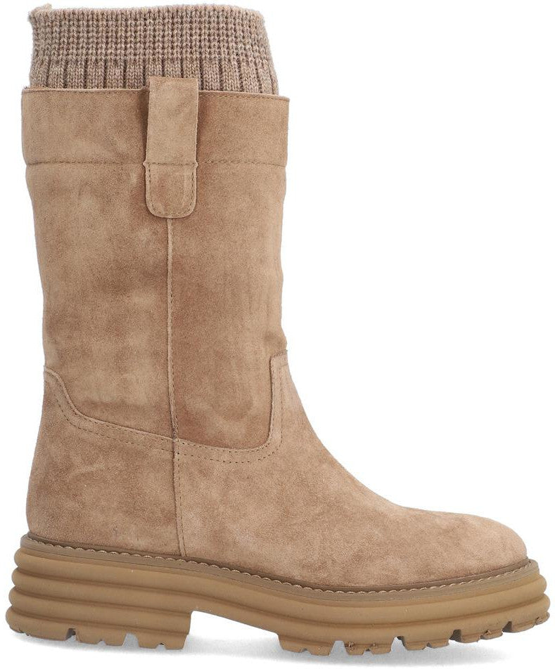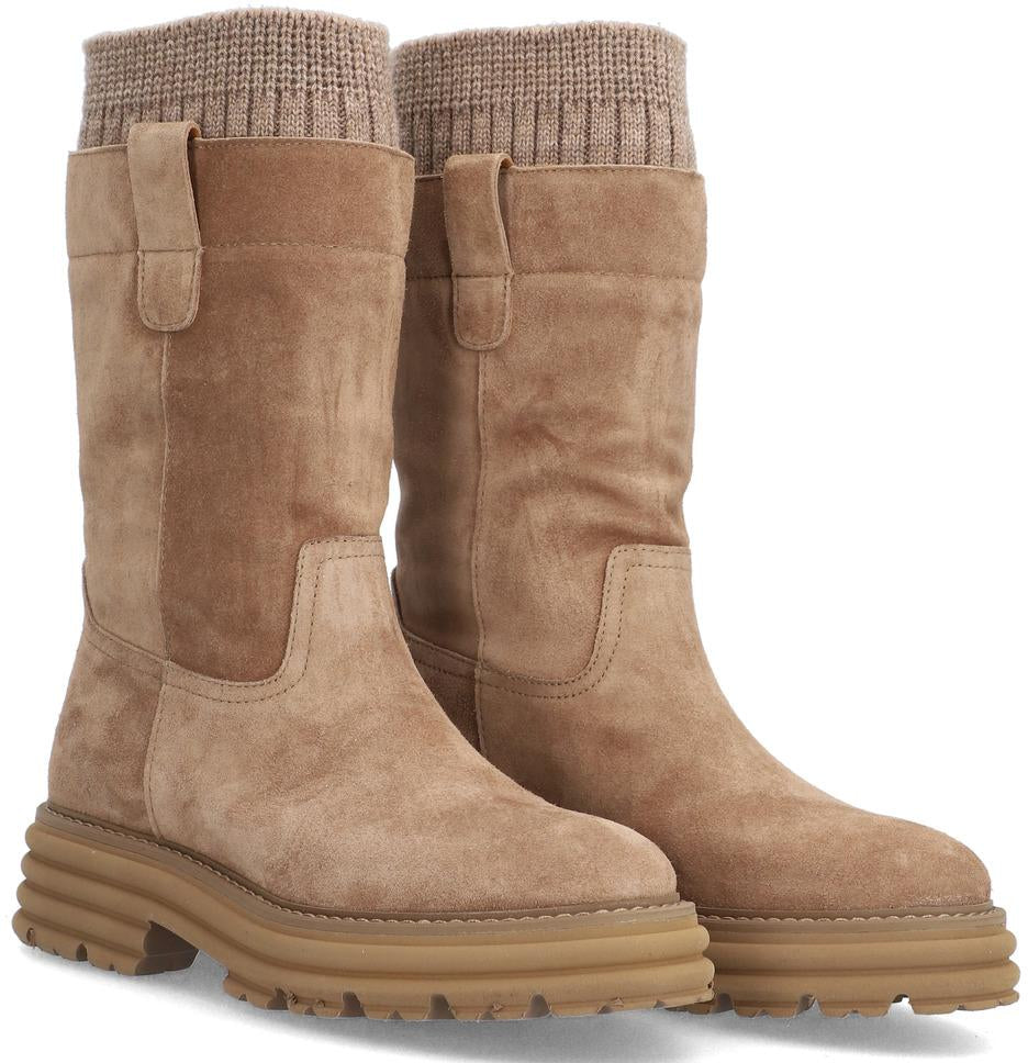 Botín de mujer marca ALPE ALABAMA hecho de piel (baby silk) en color beige con tacón de 5 cm, suela antideslizante y puntera redonda, sin cierre y caña media.