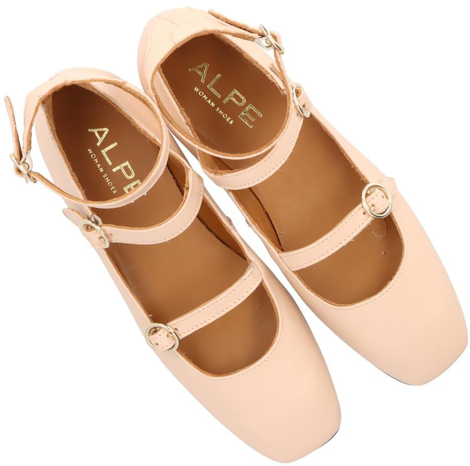 Modelo de Bailarinas para mujer ALPE ANAIS elaborado en piel ( seta) de tono rosa, tacón de 1 cm, suela antideslizante, puntera cuadrada y cierre con hebilla.