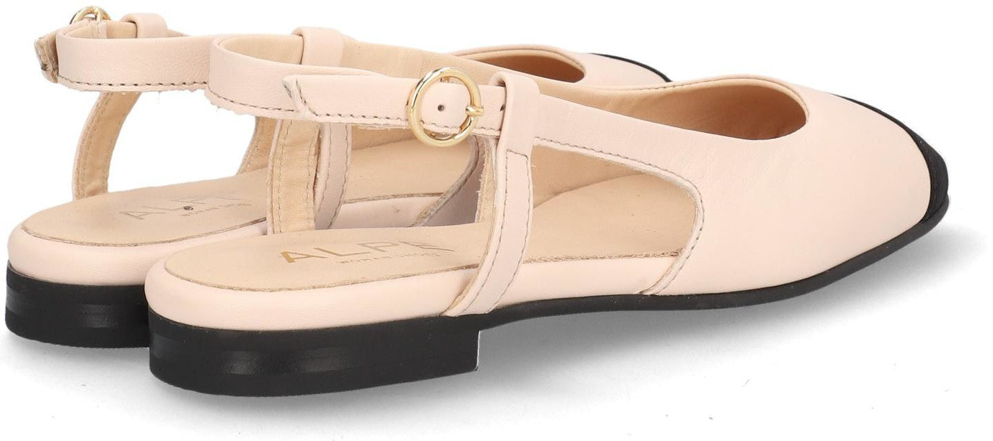 Bailarina para mujer ALPE ANAIS fabricado en piel ( ) de color blanco con tacón de 1 cm, suela antideslizante y puntera cuadrada, con cierre mediante hebilla .