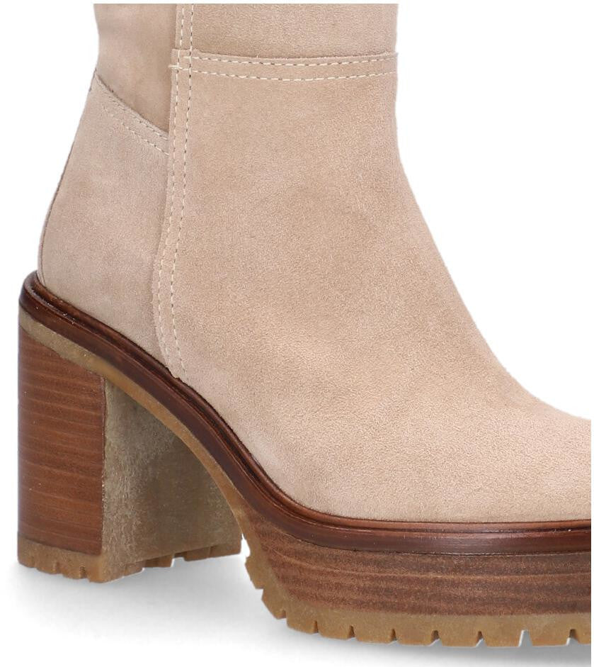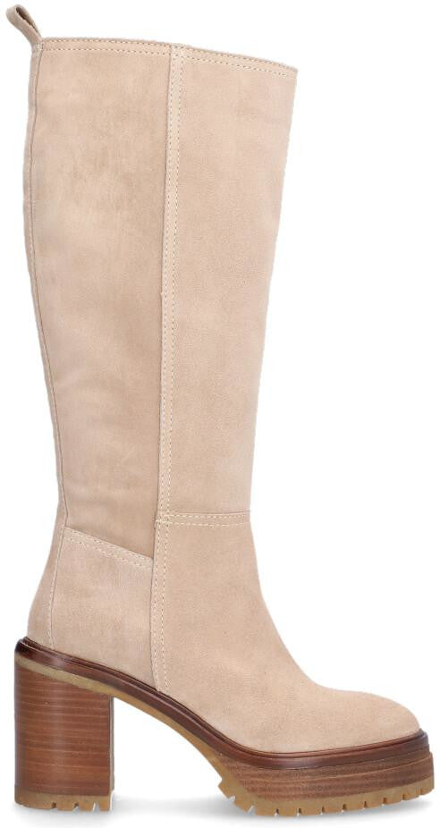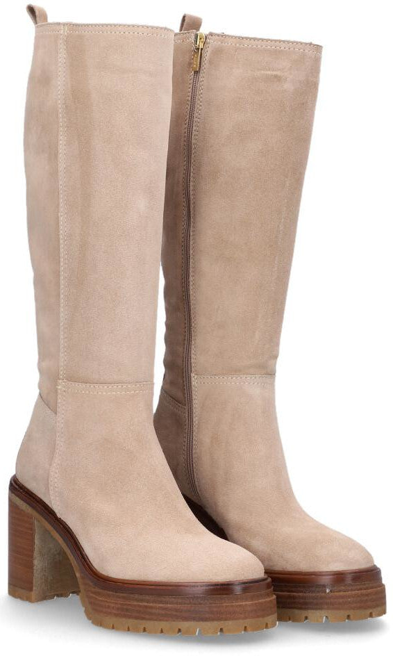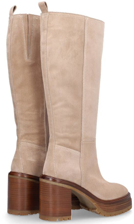 Botas para mujer ALPE ANIMA en piel ( baby silk) en color beige con tacón de 8, 5 cm, suela antideslizante y puntera redonda, cierre de cremallera y caña alta. Composición exterior de piel, interior de piel y textil, plantilla de textil.