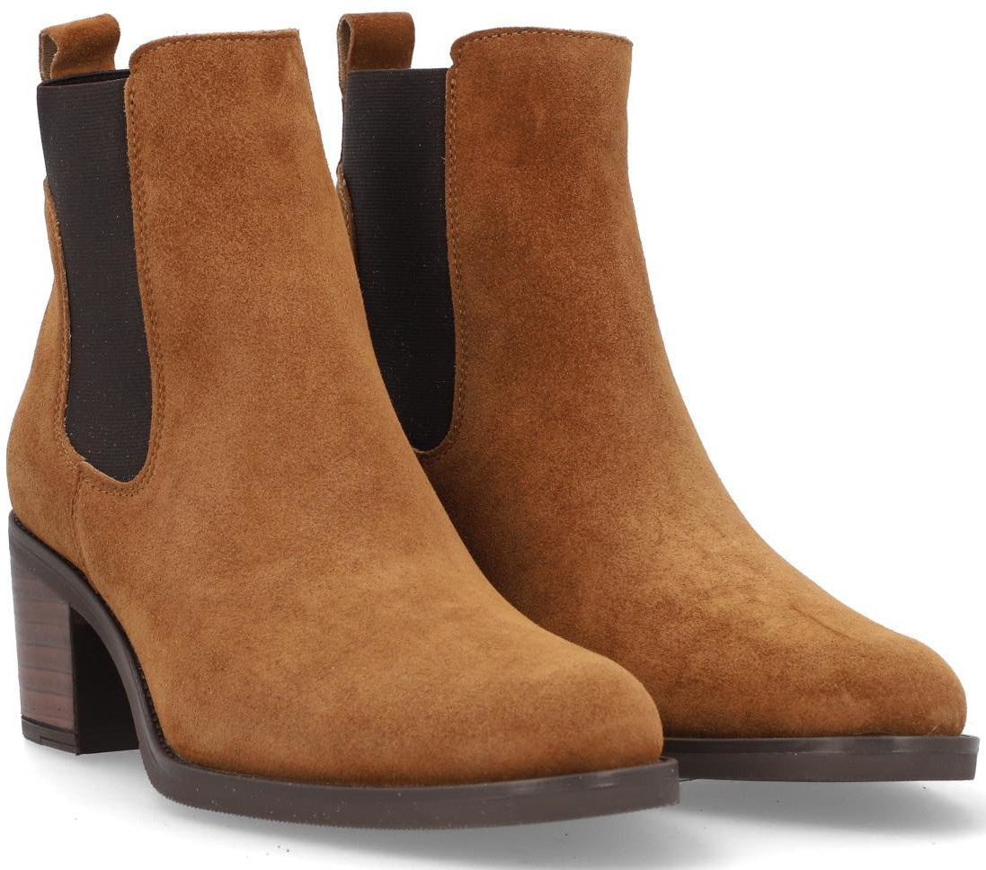 Botines de mujer ALPE ANNE elaborado en piel ( baby silk) en color marrón, con tacón de 5, 5 cm, suela antideslizante, puntera redonda, sin cierre y caña baja.