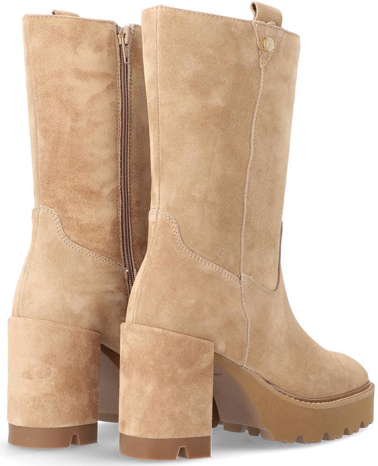 Bota para mujer ALPE COLETTE en piel (baby silk) color beige, tacón de 7 cm, suela antideslizante y puntera redonda, cierre cremallera.
