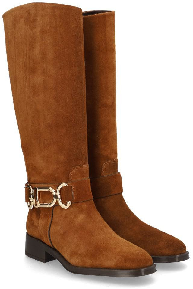 Bota para mujer ALPE COUTURE de piel ( baby silk) marrón, tacón de 3, 5 cm, suela antideslizante, puntera redonda, cierre con cremallera y caña alta. Composición exterior: piel. Composición interior: textil. Plantilla: textil.