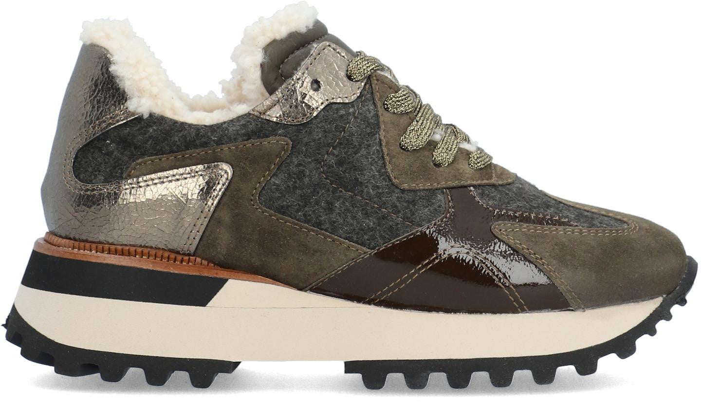 Descripción para mujer ALPE ESTELLA fabricado en piel (franela) de color verde con cuña de 5 cm, suela antideslizante y puntera redonda, con cierre mediante cordón.