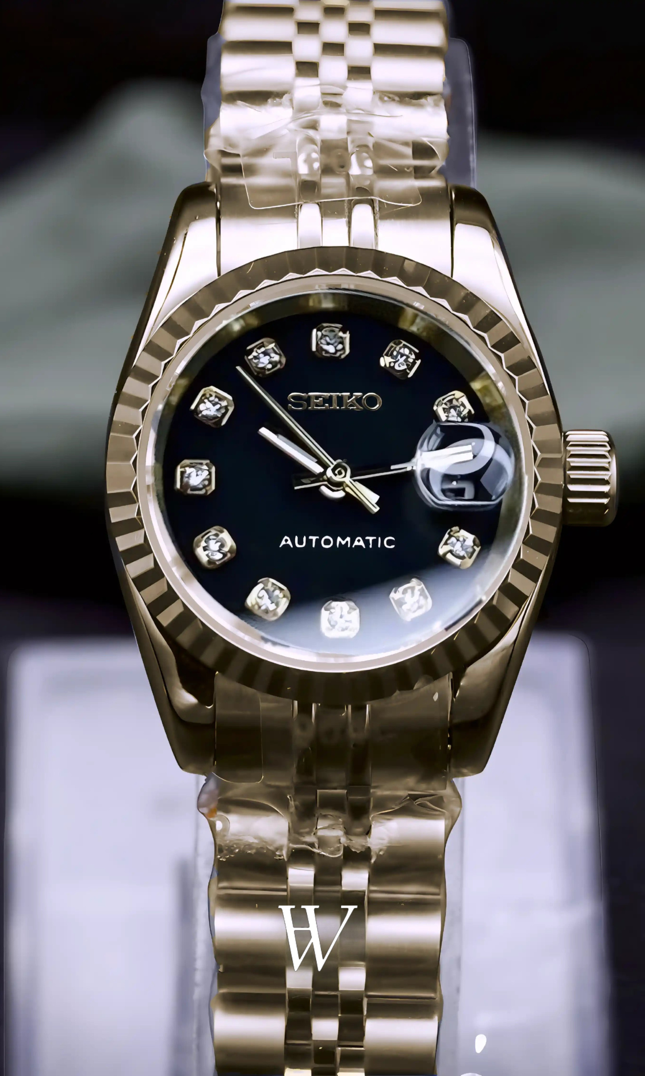Inspirado en el icónico diseño Datejust, el Seiko Mod Datejust Ladies ofrece una combinación perfecta de elegancia, precisión y lujo accesible. Su movimiento automático Seiko NH05, junto con su caja compacta de 26 mm, lo convierten en un reloj ideal para quienes buscan sofisticación en un formato delicado. El acabado en oro rosa, la esfera negra tipo gema y el cristal de zafiro mineral resistente a arañazos completan un diseño refinado y atemporal.