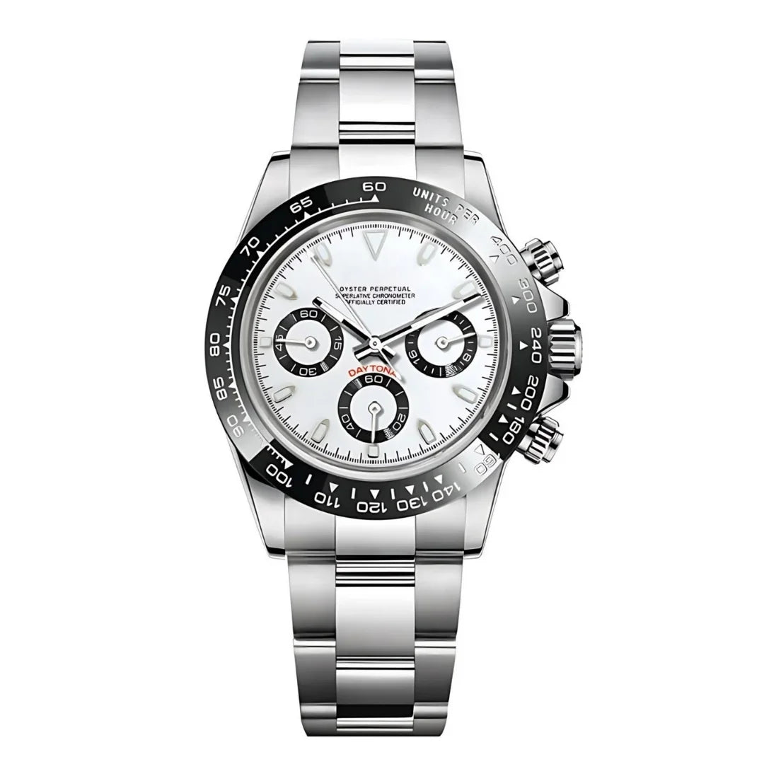 Descubre el Seiko Mod Daytona Panda , una pieza inspirada en el legendario diseño Daytona y equipada con el prestigioso movimiento híbrido Seiko VK63 . Este reloj de 40 mm combina a la perfección elegancia, precisión y accesibilidad.