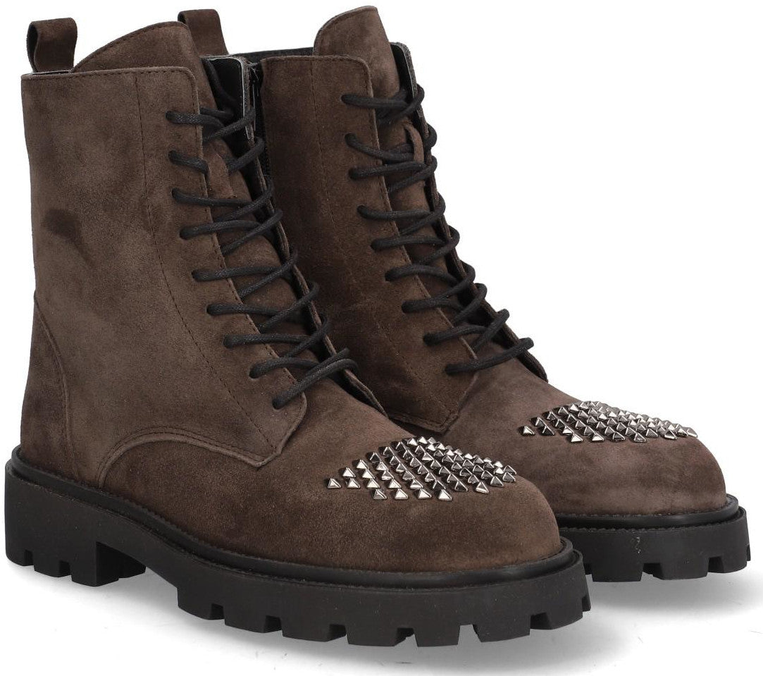 Bota para mujer ALPE AGNES en piel ( baby silk) gris, tacón de 3, 5 cm, suela antideslizante y puntera redonda, cierre cremallera y caña media. Composición exterior de piel, interior y plantilla de textil.