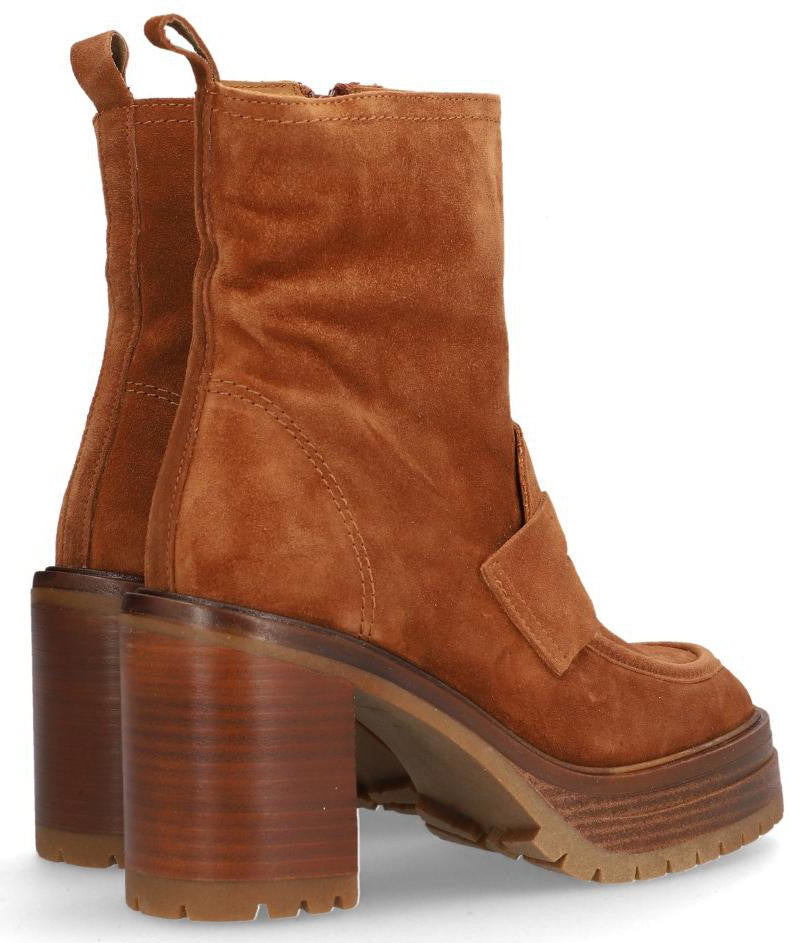 Botines de mujer ALPE ANIMA elaborado en piel ( baby silk) de color marrón con tacón de 8, 5 cm, suela antideslizante y puntera redonda, con cierre de cremallera y caña baja.
