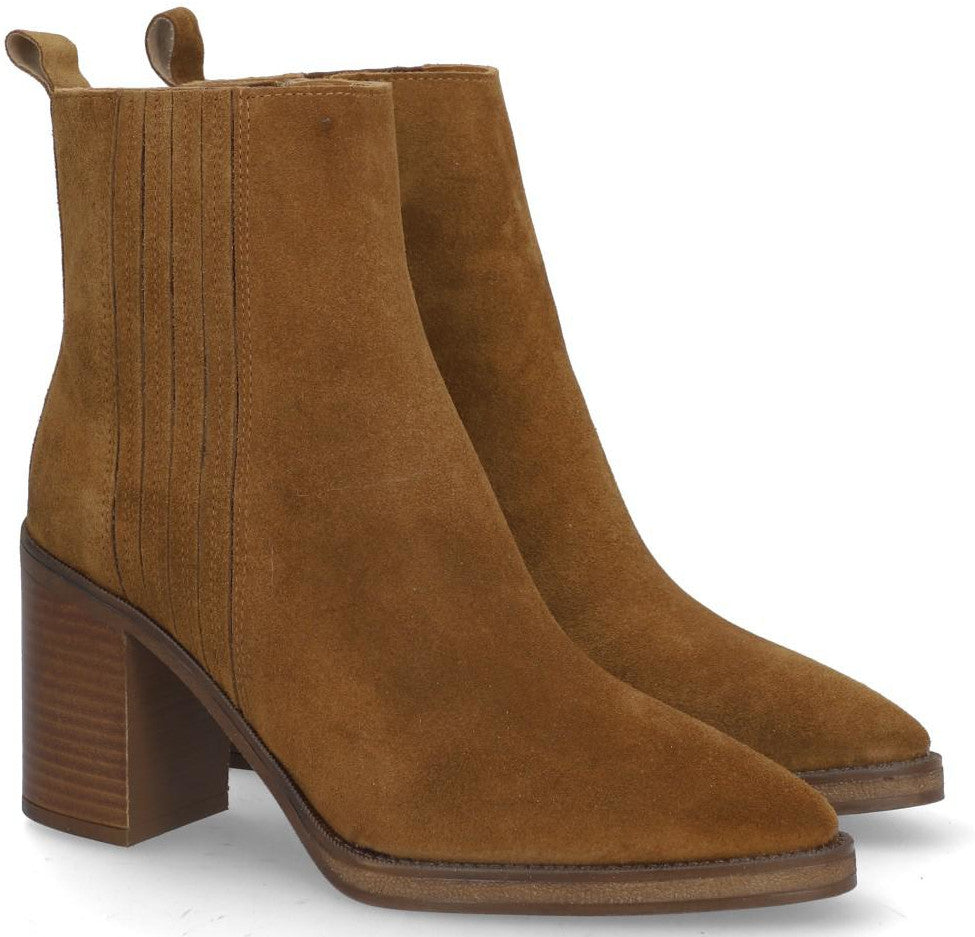 Zapatilla para mujer ALPE CAMDEN en piel ( seda baby) marrón, tacón de 8 cm, suela antideslizante, puntera afilada, cierre con cremallera y caña baja.