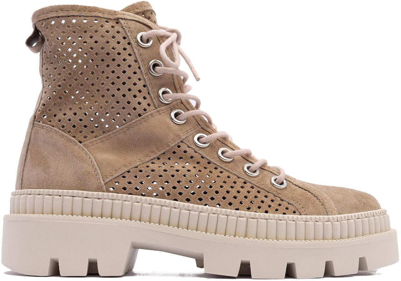 para mujer ALPE CHIARA fabricado en piel (baby silk) de color dessert con tacón de 3 cm, suela antideslizante y puntera redonda, con cierre mediante cordón y caña media.
