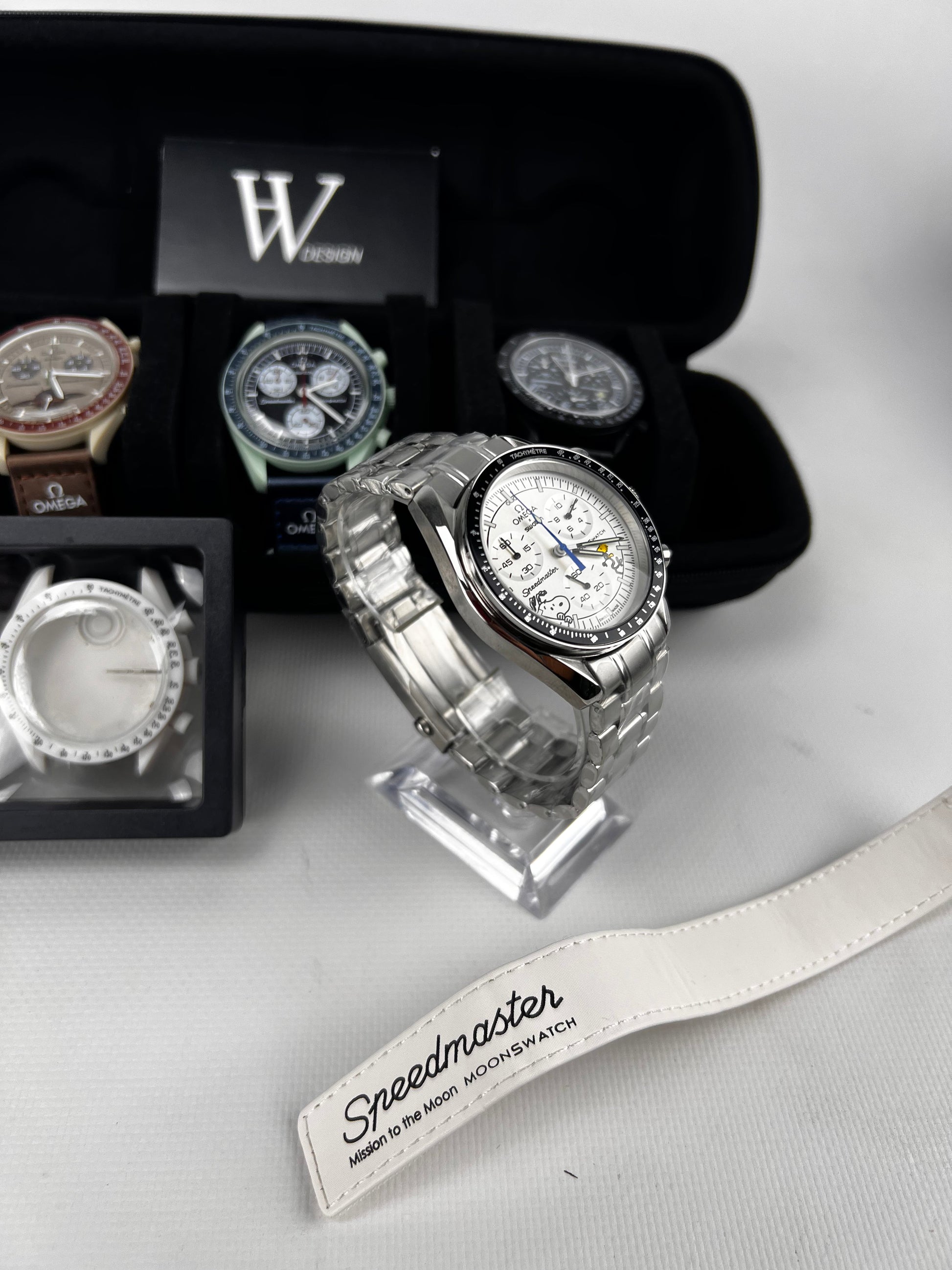 Basado en el Omega x Swatch Mission to Moon White Snoopy, en HW presentamos su mejor versión, reemplazando la caja original de plástico por una caja y correa en acero inoxidable 316l y cristal de Zafiro.